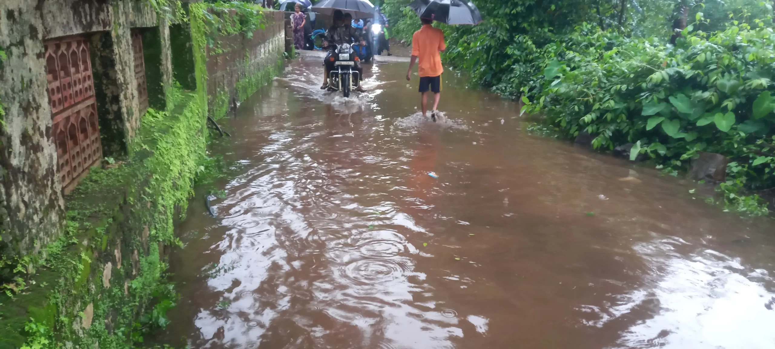 खेड-(मंदार आपटे): ज्ञानदीप शाळेच्या पाठीमागे रस्त्यावरून विद्यार्थ्यांसह नागरिकांचा जीव मुठीत धरून प्रवास करावा लागतोय नुकताच कोकणात मुसळधार पाऊस पडत असताना अनेक भागात साकव वाहून गेलेत रस्ते खचलेत अशामध्येच भडगाव खोंडे शाळेच्या पाठीमागील रोडची ही अवस्था दयनीय झाली आहे चार चाकी वाहने या खड्ड्यांमध्ये अडकलेली पाहायला मिळतात रोज सकाळी या मार्गावरती छोटे-मोठे अपघात होतात याच मार्गावरून विद्यार्थी येजा करत असतात.